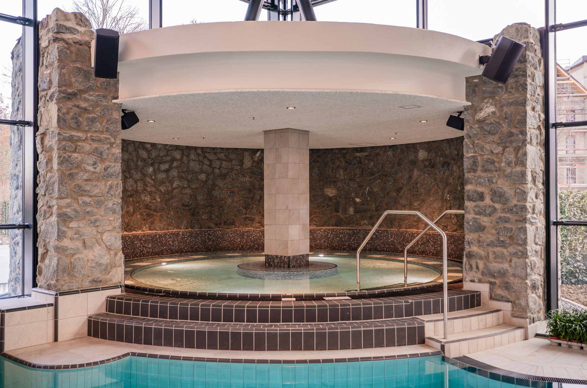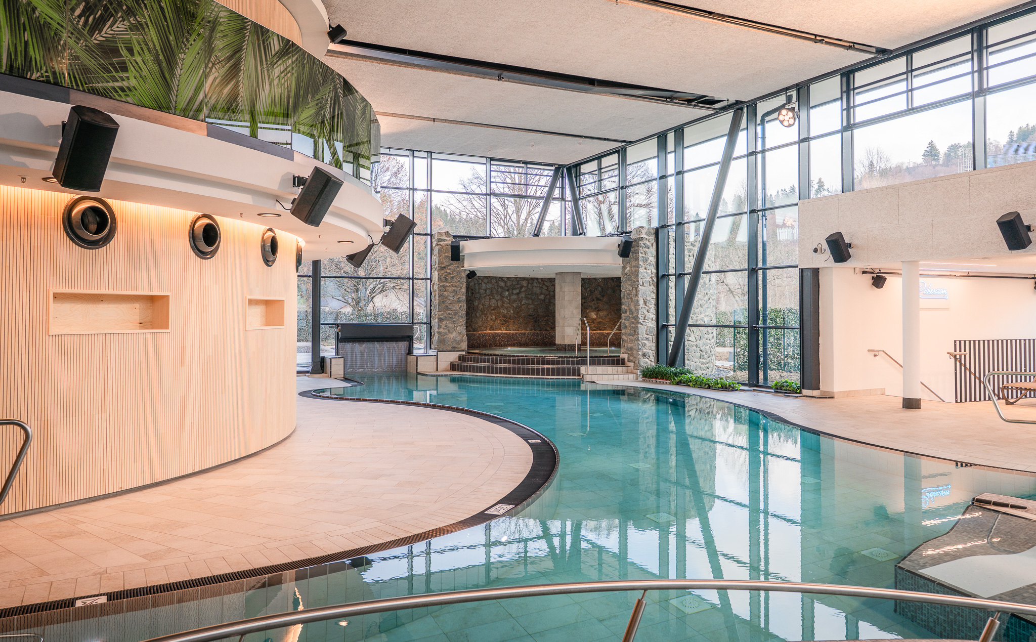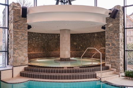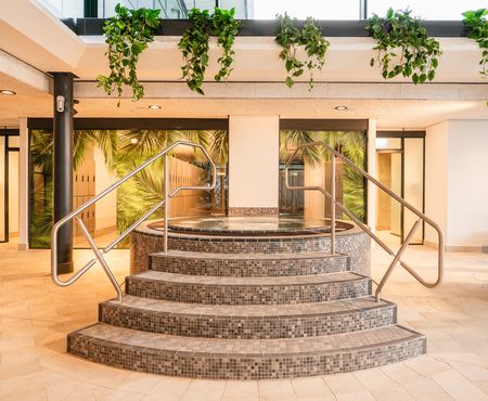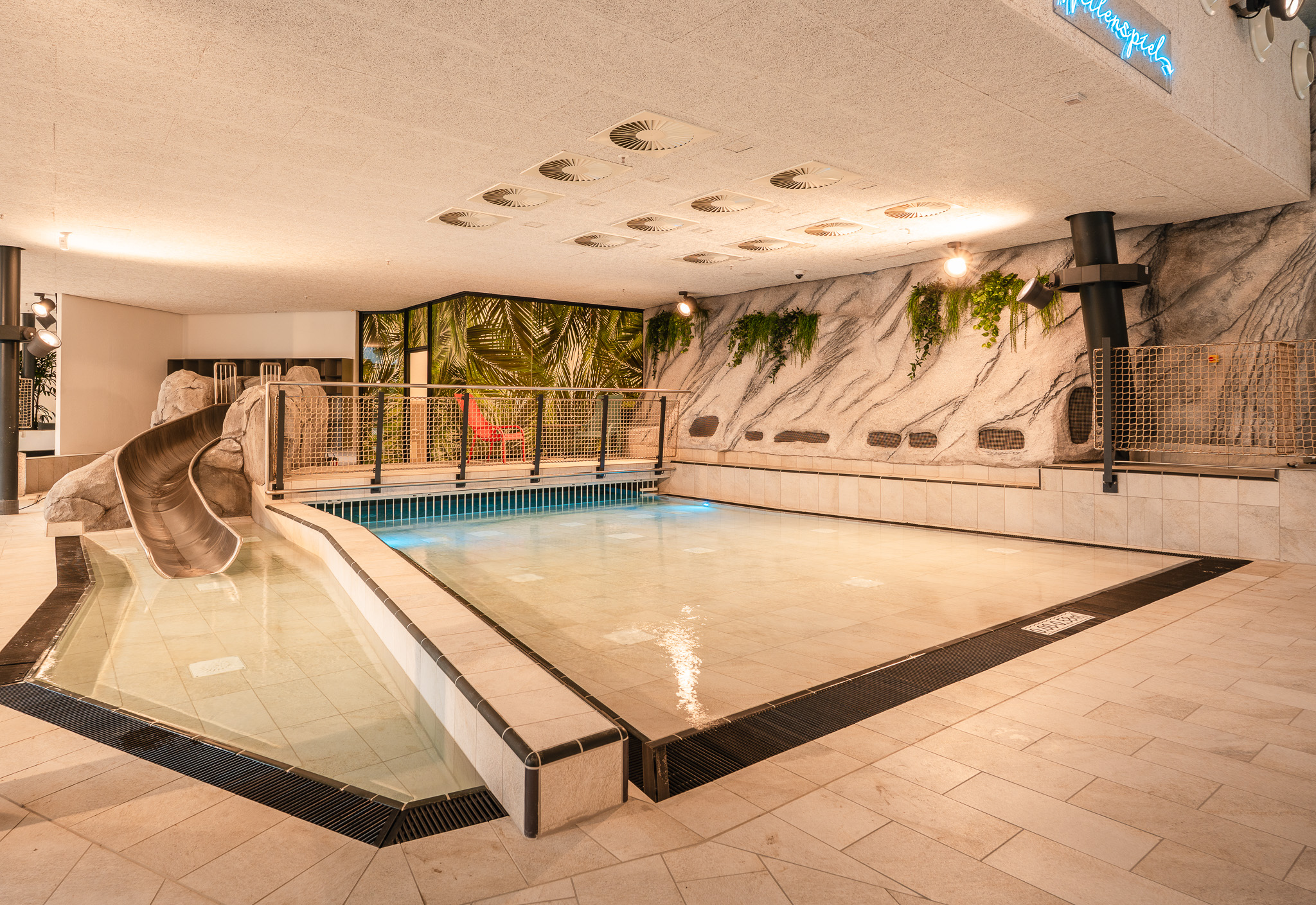 Taucht ein ins Lagunen-Erlebnisbad: Drei Innenbecken mit Sole, Whirlpool, Außenbecken, Dampfsauna, Infrarotkabine, Gradierwerk, Aqua-Rutschenpark und Kinderbereich – Badespaß für Groß und Klein!