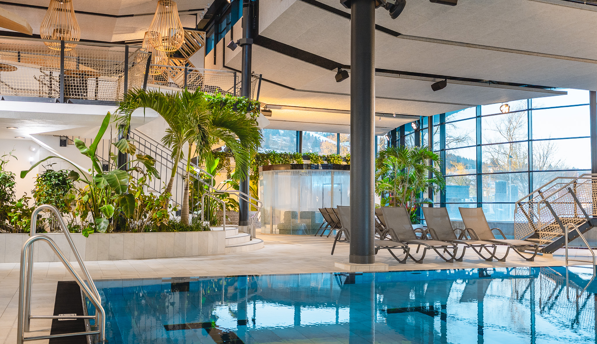 Das Floatingbecken schenkt das Gefühl völliger Schwerelosigkeit, während das Gradierwerk mit salzhaltiger Luft Körper und Atemwege verwöhnt. In der Saunawelt erlebst du wohltuende Wärme und nachhaltige Tiefenentspannung.