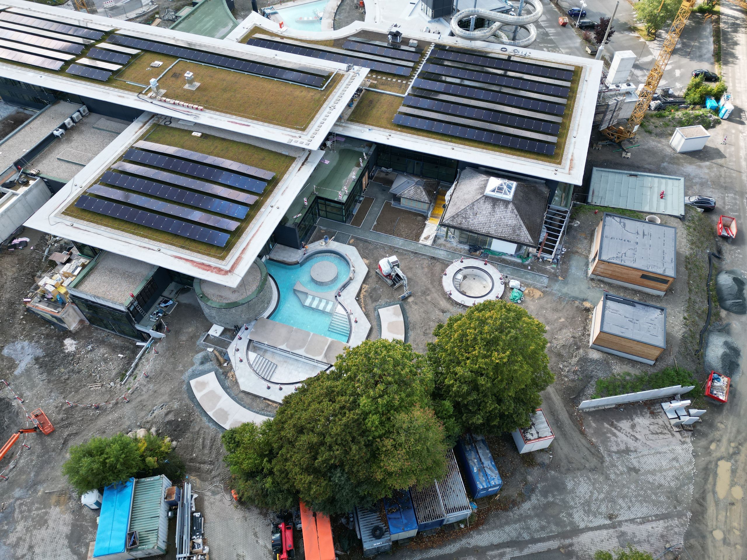 Sobald die Becken voll sind, startet die finale Phase vor der Eröffnung. In den folgenden Wochen werden sämtliche technischen Systeme umfassend geprüft: Dazu zählen Wasseraufbereitung, Temperaturregelung, Filtertechnik, Rutschen, Beckendynamik, die Saunalandschaft und Steuerungseinheiten. Auch die Hygienetechnik und Energieversorgung – inklusive der nachhaltigen Biomethan-Nutzung und PV-Anlage – werden nach und nach in den laufenden Betrieb überführt.
